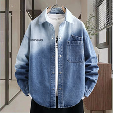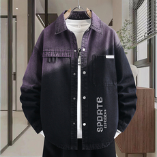 2026春上新青少年时尚翻领渐变色牛仔外套双口袋设计潮流男生夹克