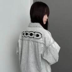 秋冬网红同款GOO字母刺绣水洗牛仔夹克男女翻领上衣高品质外套ins