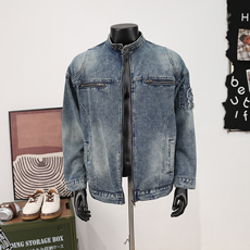 立领机车牛仔外套男款春秋季美式潮牌vibe痞帅宽松百搭拉链夹克衫