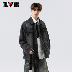 雅鹿2026春秋季新款水洗磨白破洞痞帅牛仔外套男青年时尚潮牌夹克