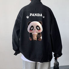 新款男士卡通印花牛仔外套春秋款宽松大码潮流痞帅百搭夹克上衣男