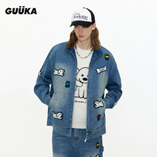 秋冬网红同款GOO字母刺绣水洗牛仔夹克男女翻领上衣高品质外套ins