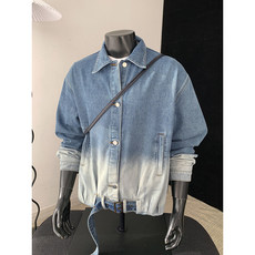 文艺风韩系简约牛仔衣男松弛感经典渐变外套短款腰带夹克jacket