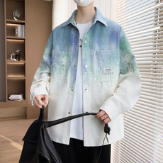 春秋季衬衫式夹克男潮牌上衣渐变印花外套男青少年痞帅长袖衬衣