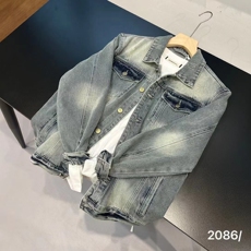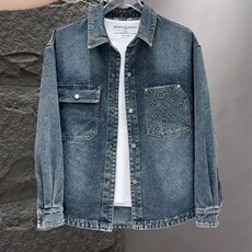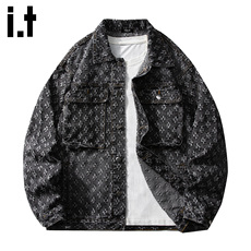 2024秋冬新款水洗牛仔夹克男装老花钢印做旧复古时尚翻领外套潮牌