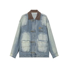 春季青少年2026韩系牛仔翻领外套潮牌扎染个性按扣设计百搭夹克