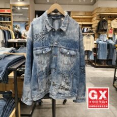 CNC男装奥莱破洞牛仔夹克男春秋新款高街风潮流休闲满印logo外套