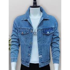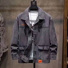 牛仔外套男宽松春秋新款夹克韩版简约纯色潮流休闲翻领开衫上衣服