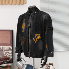 秋美式花卉刺绣水洗廓形宽松翻领牛仔衣夹克情侣外套
