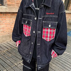 春季穿搭青少年2026美式复古牛仔外套撞色格纹设计翻领有型夹克