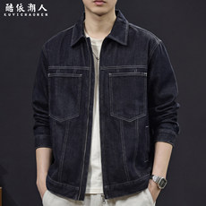 马切达春秋季美式上衣潮牌通勤工装牛仔外套男士复古痞帅休闲夹克