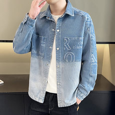 春季新款青少年休闲风牛仔衬衫夹克翻领时尚潮流百搭男生牛仔外套