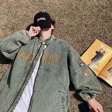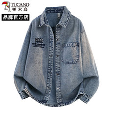啄木鸟复古牛仔外套男春秋季新款字母刺绣夹克男痞帅休闲长袖衬衫