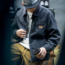 纯棉底特律工装夹克外套男春秋潮牌宽松大码上衣男士翻领休闲外套