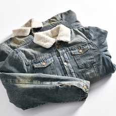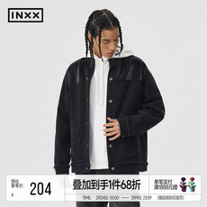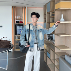 NMAX大码潮牌男装秋新品领口拼接翻领牛仔衣复古做旧短款夹克外套
