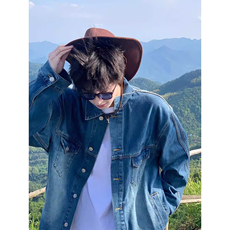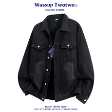 高定提花肌理潮牌牛仔外套男士2026秋季新款宽松美式复古夹克男装