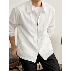 LUUD 简约净纯色亚麻混纺休闲衬衫外套男立体贴袋双拉链翻领夹克