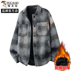 啄木鸟加棉格子毛呢外套男装秋冬季2025新款潮牌加厚夹克呢子衣服