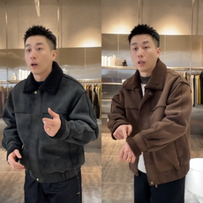 WH先生美式cleanfit摩登绒皮机车夹克男女复古情侣短宽工装外套