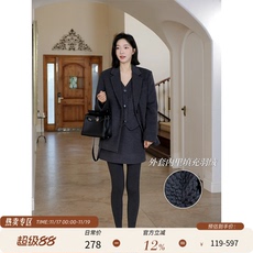 SEEKMITED深灰色单排扣羊毛西装马甲商务通勤v领内搭黑色马甲