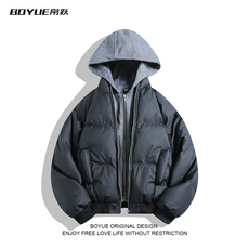 胡子叔大码女装胖mm连帽羽绒棉服冬季韩版黑色高级感夹棉短棉衣潮