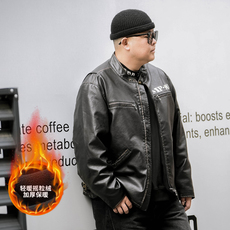 美式硬汉风做旧毒液皮衣加绒痞帅机车大胖子皮夹克 300斤潮牌棉服