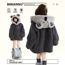 2026新品 日系复古休闲文艺感扣袢松紧收摆宽松小廓形棉服