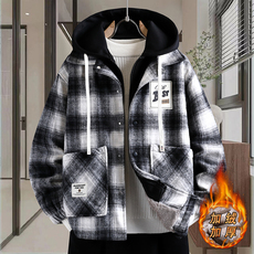 青少年大童加绒加厚格子外套男冬季假两件棉服男孩初高中学生夹克