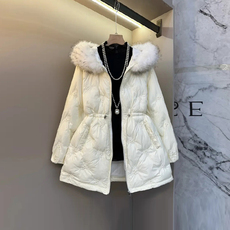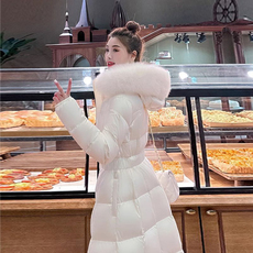 2024冬新款过膝高端大毛领修身保暖轻奢加厚收腰羽绒棉服外套女