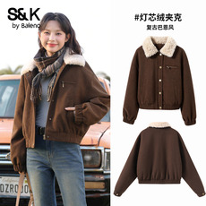 班尼路S&K系列美拉德灯芯绒翻领夹克女2026秋冬新款夹棉外套棉服H