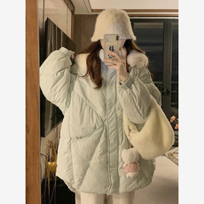 vogana戛纳家大码原创韩系休闲極简轻量感保暖宽松菱格棉服厚外套