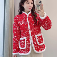 新中式大码女装2025冬季款轻奢国风盘扣毛毛袖棉服高级感保暖外套