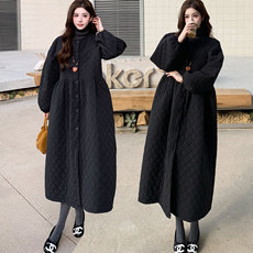大码女装时尚夹棉菱格棉服外套200斤胖mm时尚保暖立领羽绒棉衣韩