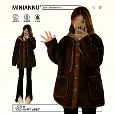 宽松廓形慵懒立领加绒加厚保暖外套冬季新款长袖女装棉衣棉服Q131