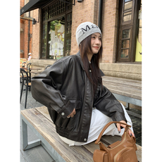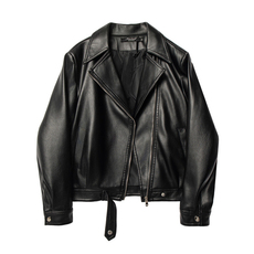 羊皮革【韦】拉春装 廓形质感机车风夹克休闲皮衣外套857