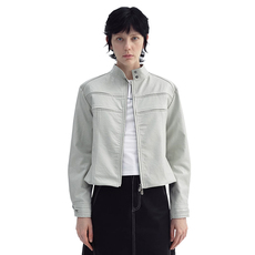 nomnonnomme 复古休闲合身短版拉链分割皮衣夹克外套