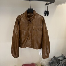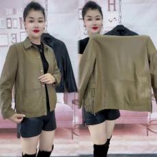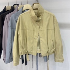绵羊皮革【申】春装 立体方袋修身系腰带按扣皮衣外套518
