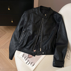2026春季新款复古气质立领PU皮衣外套女高级感短款小个子机车夹克