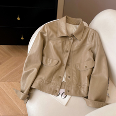 小C家 卡其色皮衣女2026新款今年流行爆款春小个子短款皮夹克外套