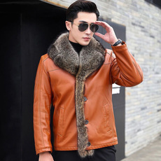 海宁绵羊皮高端男装皮毛一体皮衣外套冬季加绒加厚男士机车皮夹克