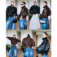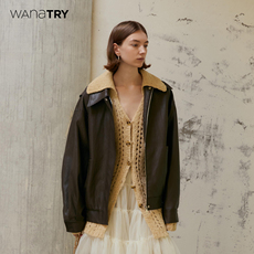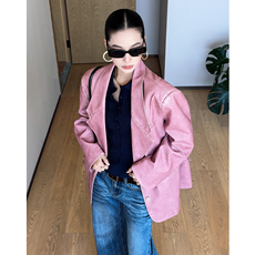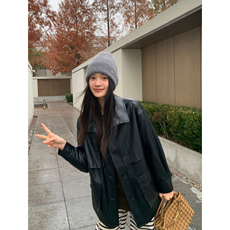 【悠悠】宽松型极简风拼接皮衣秋冬黑色温婉风辣妹风