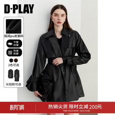 MULVAN【现货7折】 纽约时报 配腰带~复古黑色pu皮衣系带收腰外套