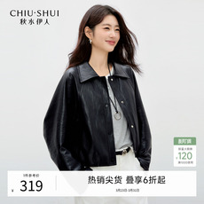 【迪丽热巴秦岚同款】NanaJacqueline短款收腰皮衣翻领夹克外套女