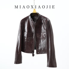 【决明】复古荔枝纹水洗蛋白皮 雾感哑光廓形显瘦哈灵顿皮衣-5031
