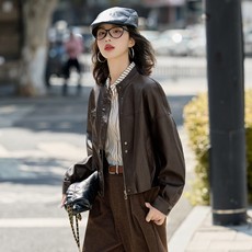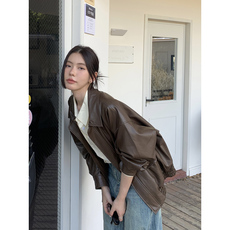 Halo Luu 棕色皮衣外套女春季2026新款复古宽松高级感机车皮夹克