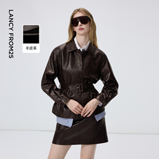 进口胎羊皮真皮皮衣头层绵羊皮娃娃领气质腰带收腰显瘦短款外套女