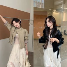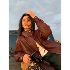 pusumede【现货6.5折】甜酷立领皮衣外套女宽松高级感夹克机车服