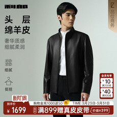 陆堡新品高端山羊皮真皮皮衣男时尚机车短款立领羽绒皮夹克外套男