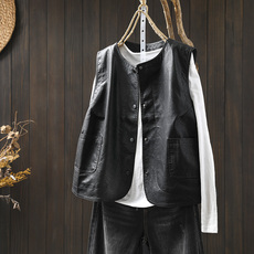 新中式国风拼接皮马甲2026新款唐装宽松显瘦海宁绵羊皮坎肩外套潮