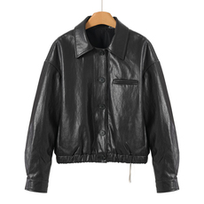 26春pepamack同款 高级复古风羊皮质感 时髦翻领短款皮衣外套